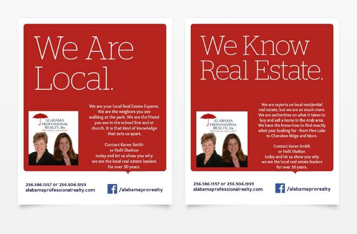 | Put our family team to work for your family team!!!! No one reaches the top alone - Behind every successful business is a dedicated team! The caring & dedicated staff at Alabama Professional Realty works together to create the best chance of success for you! We, at Alabama Professional Realty, welcome the opportunity to work for you! Put our family team to work for your family team! Call us at 586-1357 or drop by our office at 175 S Main Street in Arab today! KAREN SMITH - Lifetime member of the Million Dollar Producers. Top Broker-Realtor in Arab and in Individual Sales 1999, 2000, 2001, 2003 with multimillion in closed sales annually. B.S. from University of Alabama. Member of Arab First United Methodist Church. HOLLI SMITH - 3rd generation Realtor with a B.S. in Marketing from UAH. She has grown up in the Real Estate business and knows it from inside out! Arab Chamber of Commerce Board Member & Member of Marshall County Leadership Challenge. Member of Arab First United Methodist Church. |